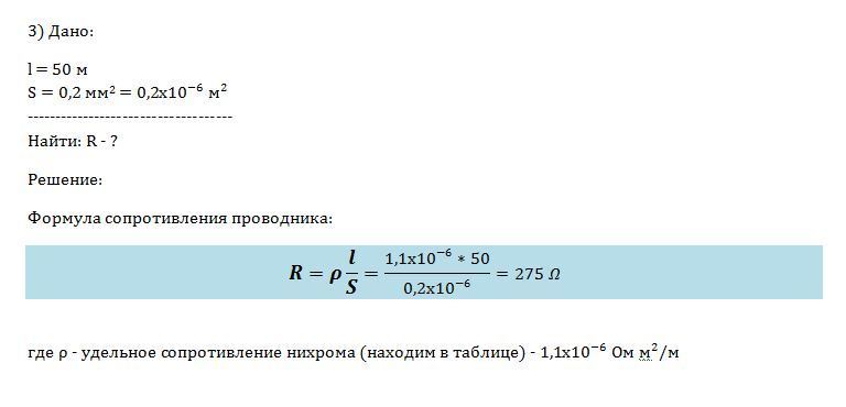 3)спираль изготовленна из нихромового повода длиной 50 м и поперечным сечением 0,2 мм^2. какогго его сопротивление?(решение)