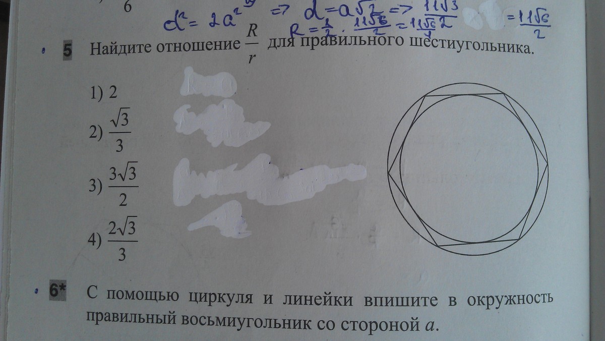 2. разобъём шестиугольник на щесть рвносторонних треугольников. тогда радиус вписанной окружности равен высоте треугольника, а радиус описанной - стороне.