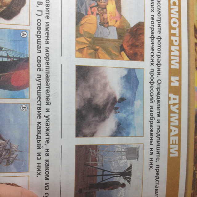 Рассмотрите фотографии. Определите и подпишите, представители каких географических профессий изображены на них