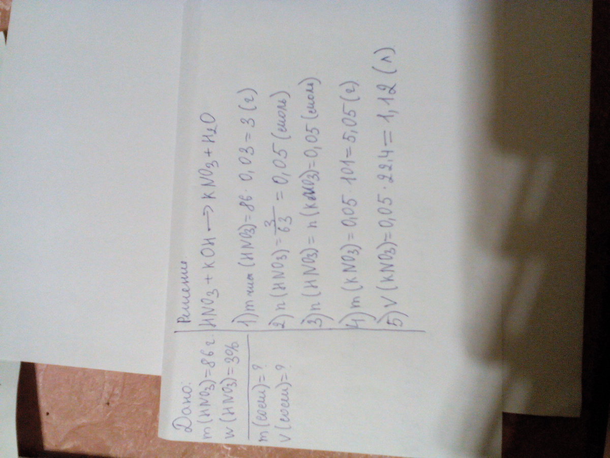 3)n(HNO3)=n(KNO3)=0,05(моль), т.к 1:1