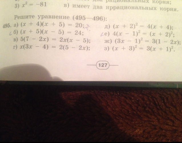 Пожалуйста помогите мне решить уравнение 495 б) и е). Напишите по понятливее. Заранее спасибо.