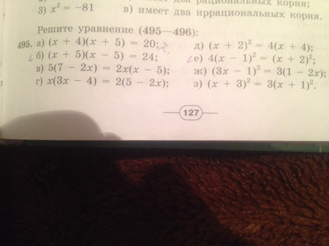 Пожалуйста помогите мне решить уравнение 495 б) и е). Напишите по понятливее. Заранее спасибо.