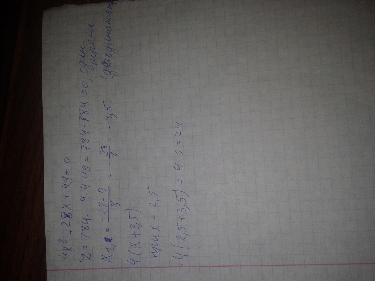 при х=2,5⇒ 28*2,5+49+4(2,5)^2=70+49+4*6.25=109+25=134