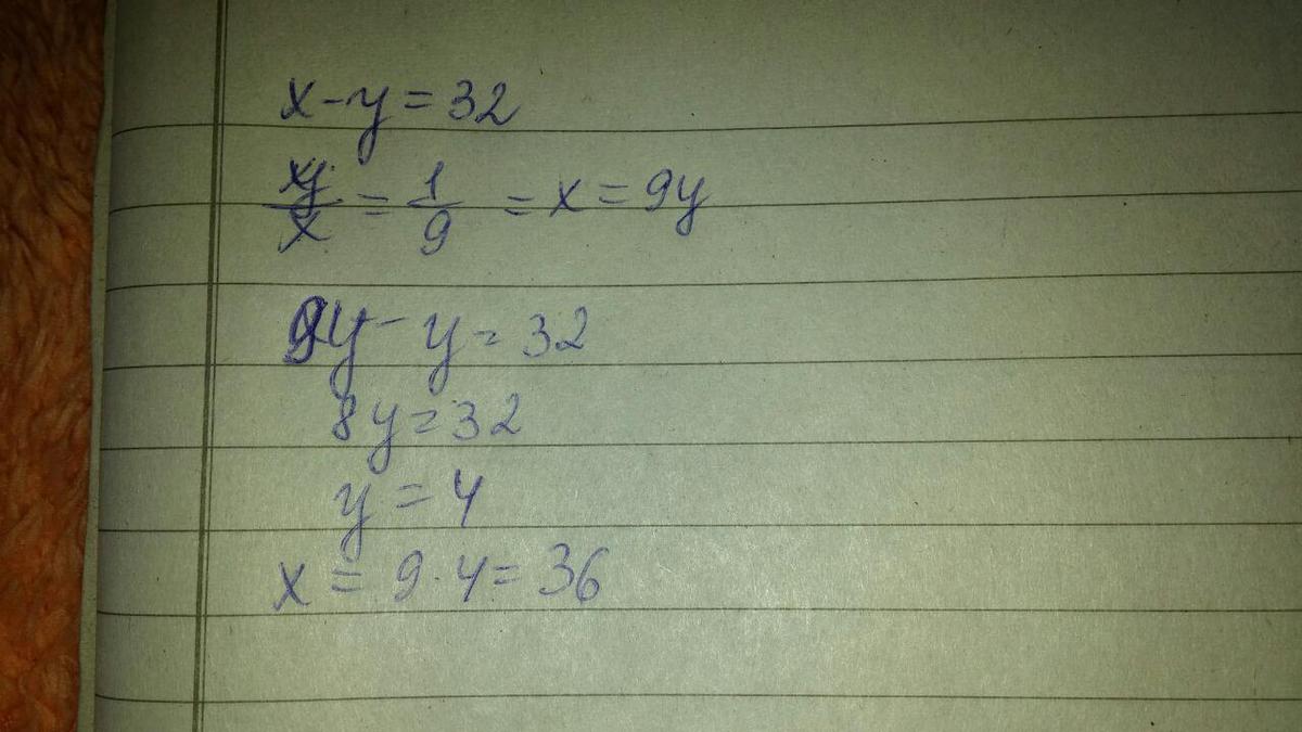 разность двух чисел равна 32 причем одно из них составляет 1/9 другого чему равно большее число?