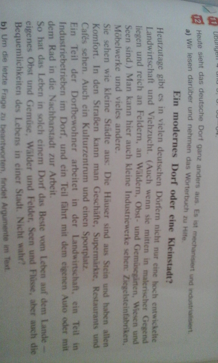 В наши дни во многих немецких деревнях есть не только высокоразвитое сельское хозяйство и животноводство.(А также,если они располагаются в живописной местности и богаты полями,лесами,фруктовыми и овощными садами,лугами и озёрами.) Здесь также можно увидеть маленькие промышленные заводы: кирпичные заводы,мебельные фабрики и многое другое.