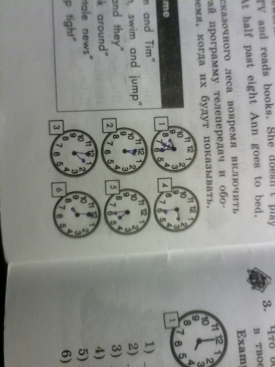 помоги жителям сказочного леса вовремя включить телевизор Прочитай программу телепередач и обозначить на часах время когда я буду показывать