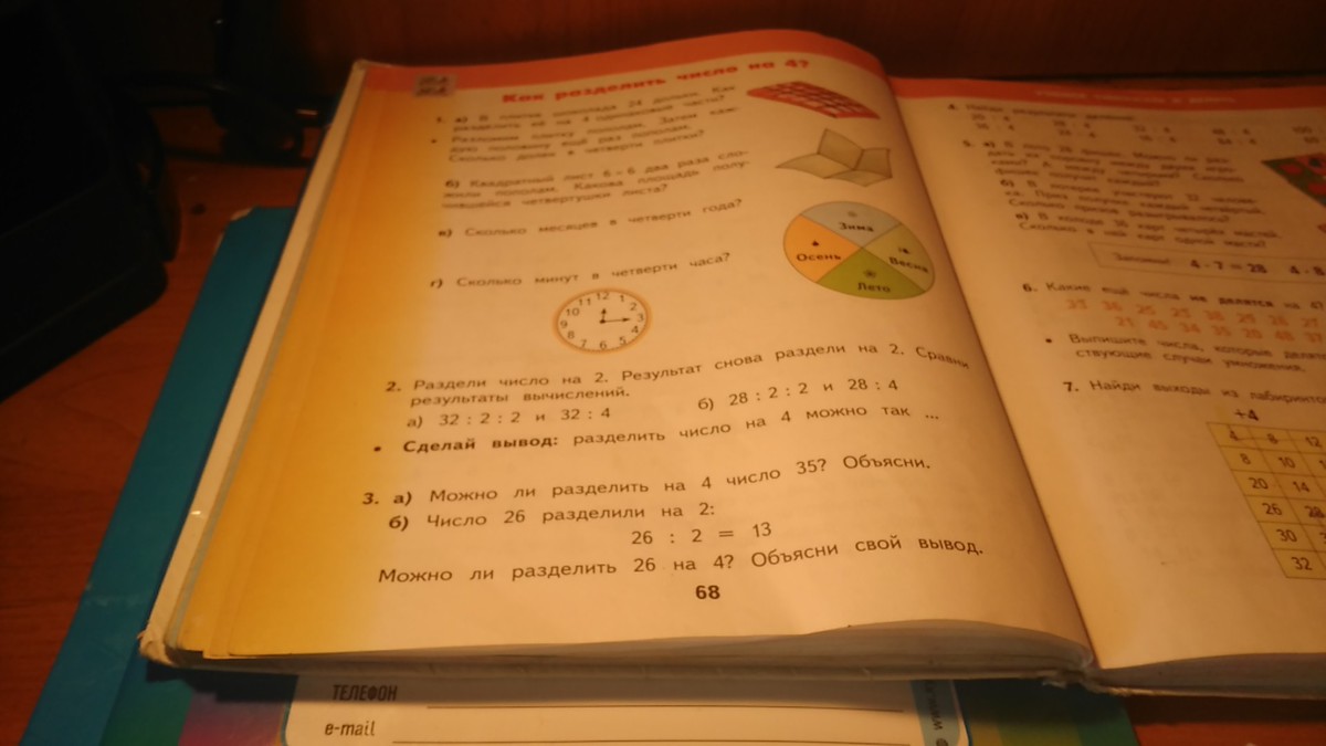 вот так: 32:2:2=8 32:4=8 28:2:2=7 28:4=7 ив мой там вывод и всееее