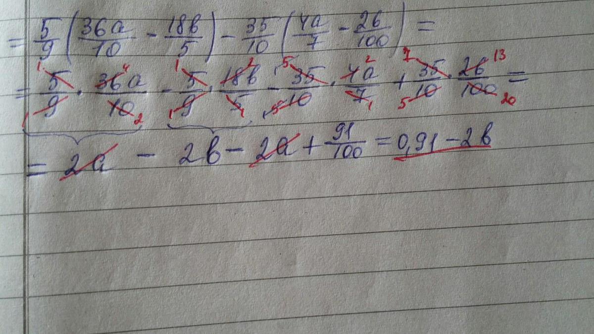 5/9(3,6а-3 3/5в)-3,5(4/7а-0,26)=