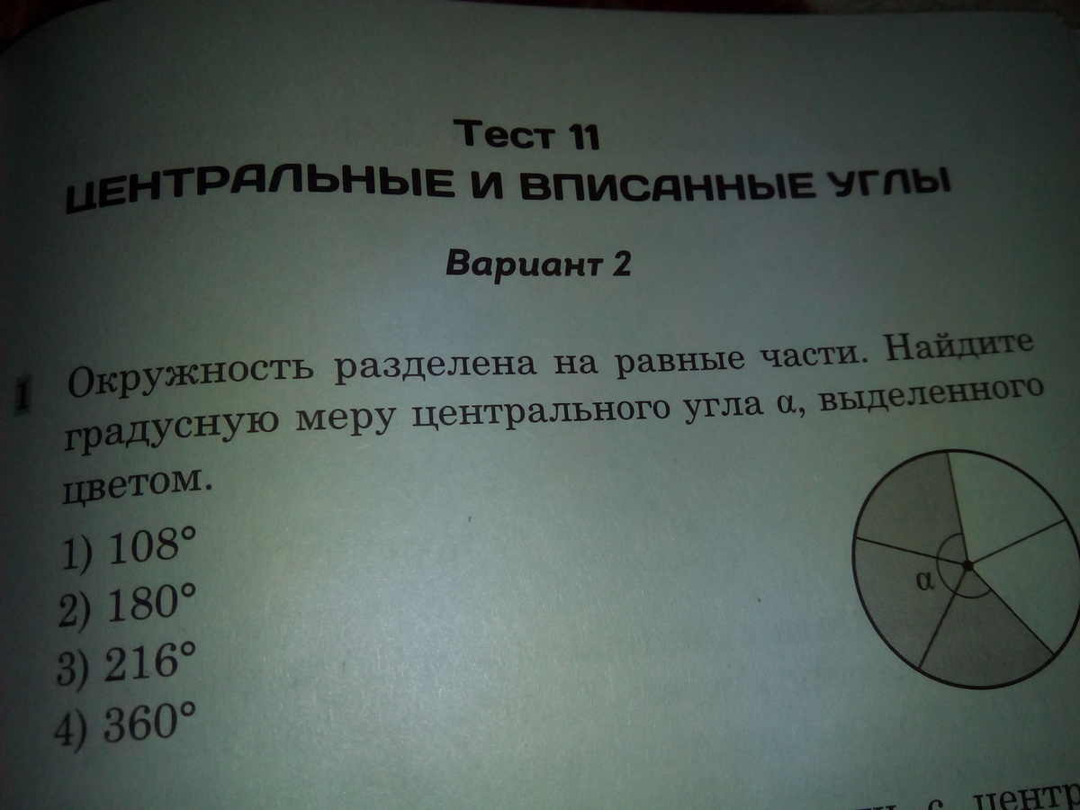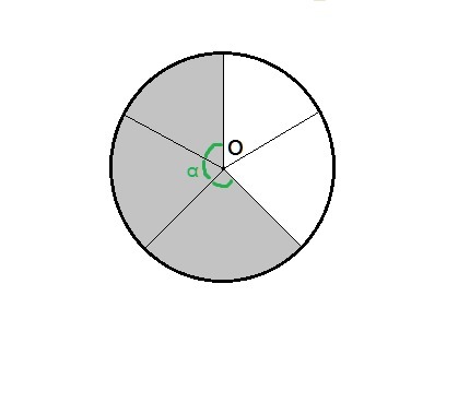 3) Так как ∠α центральный, то его градусная мера равна дуге, на которую он опирается. Дуга, на которую опираются 3 закрашенные части окружности, равна 216. Значит: