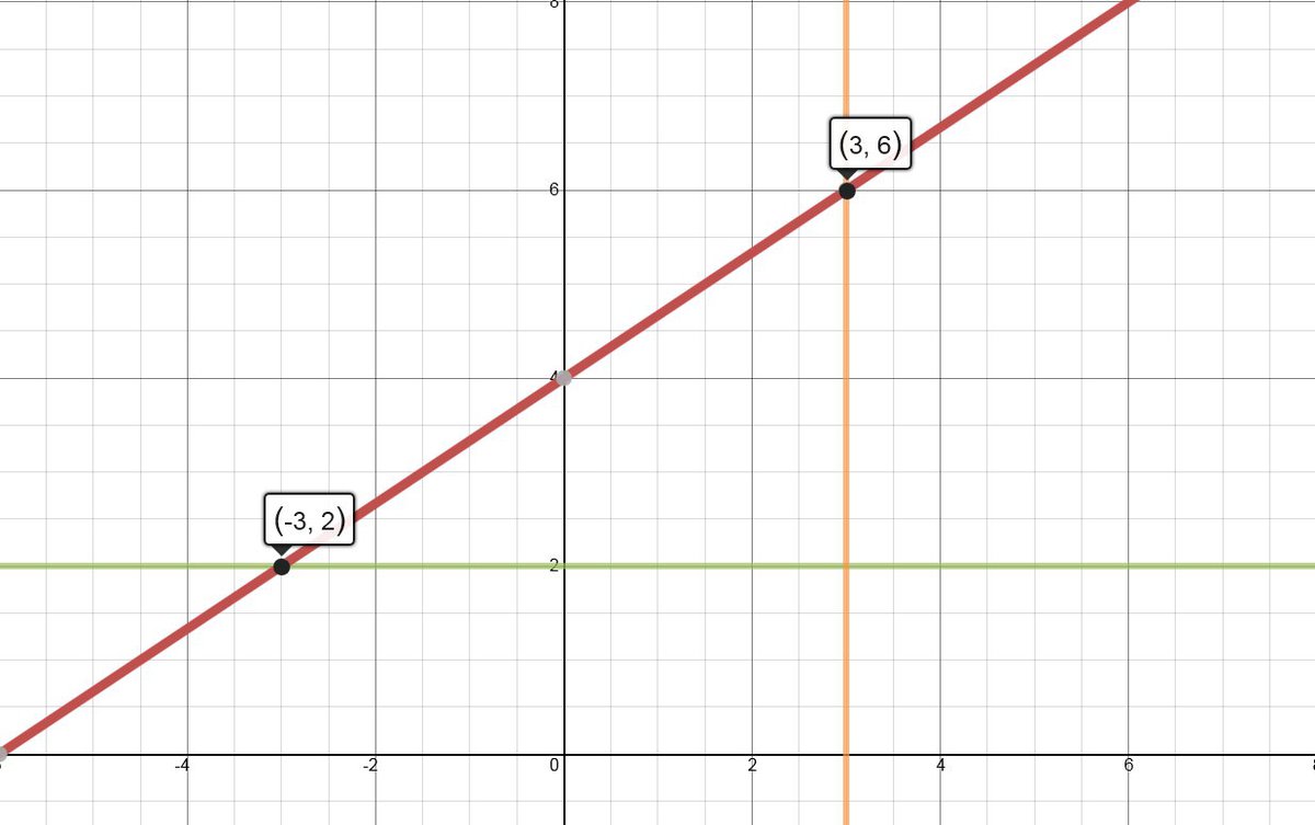 (на рисунке зеленого и оранжевого цвета соответственно). Найдем по рисунку точки пересечения этих графиков. Видим, что: