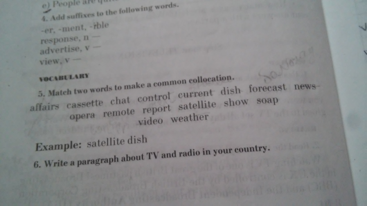 Remote control, soap opera, video cassette, weather forecast, news report, chat show, current affairs