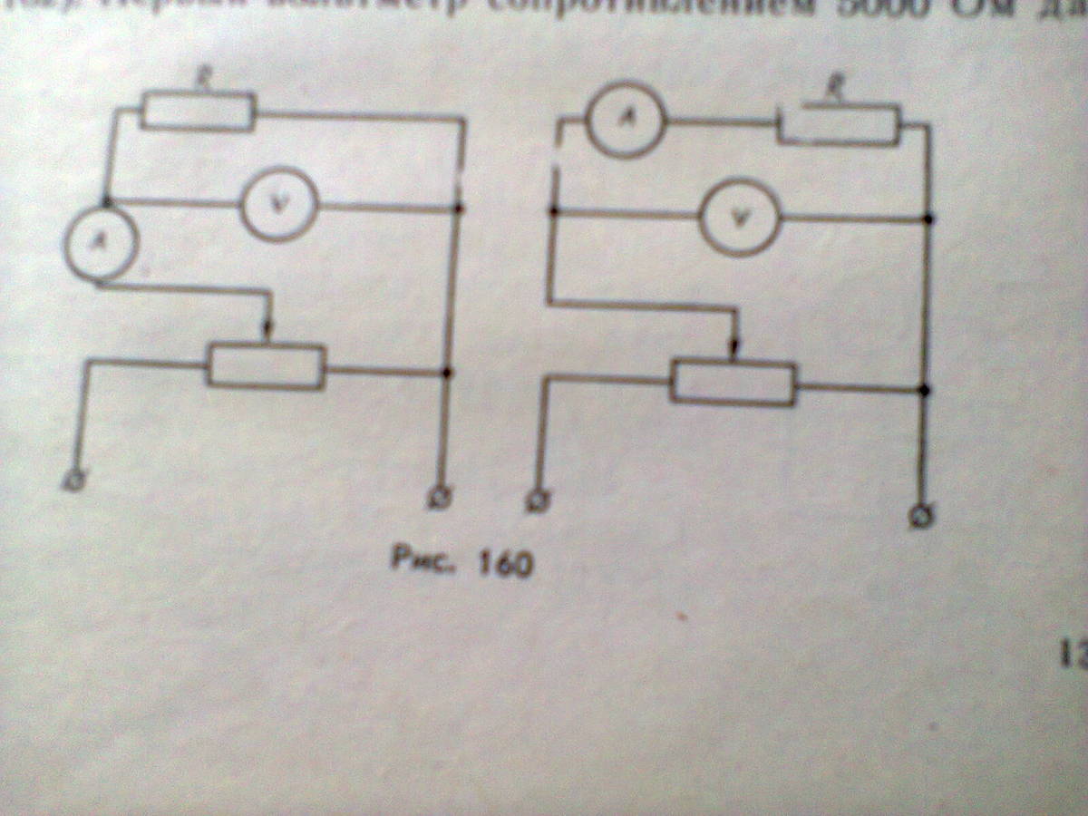 на рисунке изображены две схемы электрических цепей предназначенных для измерения сопротивления резистора R.Сравните эти цепи.Какая из них более предпочтительна и в каком случае?