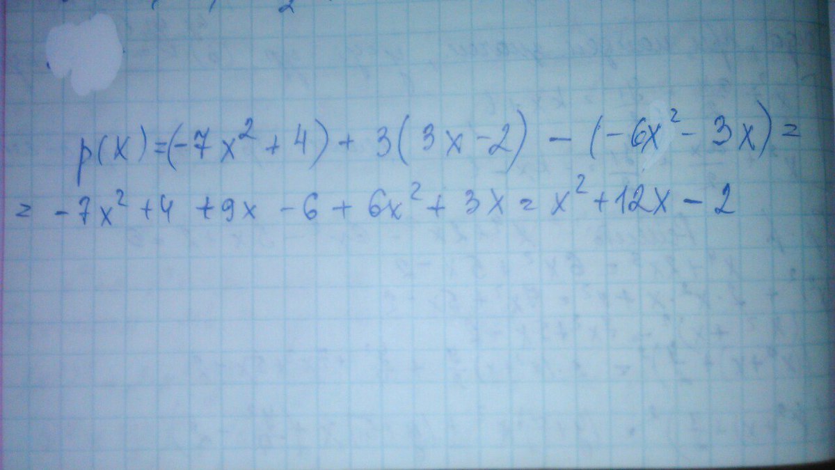 составте многочлен p(x)=p1(X)+3p2(x)-p3(x) и запишите его в стандартном виде если p1=-7xв квадрате +4,px2=3ч-2, px3=-6x в квадрате -3x