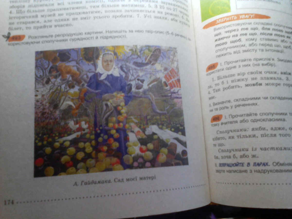 На цій картині зображена мати, в неї кам"яне, хмуре лице, її очі говорять самі за себе, що щось не так. Навкруги все в розкид: рушники, гілки, глечики і так далі. В її тоненьких ручках ледь ледь тримаються пару яблук, всі інші вже покотились на землю.