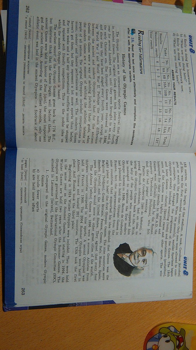Олимпийские игры являются международным спортивным соревнованием, возникшим в Древней Греции. Оригинальные греческие игры проводятся раз в четыре года втечение нескольких сотен лет, пока им не наступил конец в ранней христианской эпохе. Олимпийские игры возобновились в 1896 году, и с тех пор они проводятся раз в четыре года, кроме Первой и Второй мировых войн. Вероятно, главное отличие древних.и современной.Олимпийских игр состоит в том, что древнегреческие игры были способом восхваления богов, тогда как современные игры являются способом восхваления спортивных талантов людей всех наций. Оригинальные Олимпийские игры включали соревнования в музыке, ораторском искусстве и театральных представлениях. Современные игры не включали всебя такие соревнования, но они представляют множество видов спорта, чем раньше. Втечение двух с половиной недель любые международные конфликты должны быть остановлены и заменены дружественными соревнованиями. Это благородная идея, на кот.основано движение современной.Олимпийских игр.