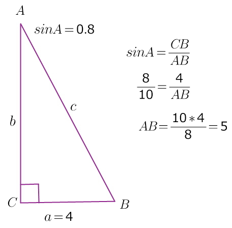 определение: синус угла = отношению противолежащего катета к гипотенузе