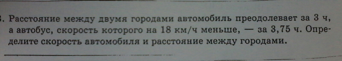 Пусть у автомобиля V равна х,а у автобуса х-18(тк на 18 километров меньше,условие задачи)