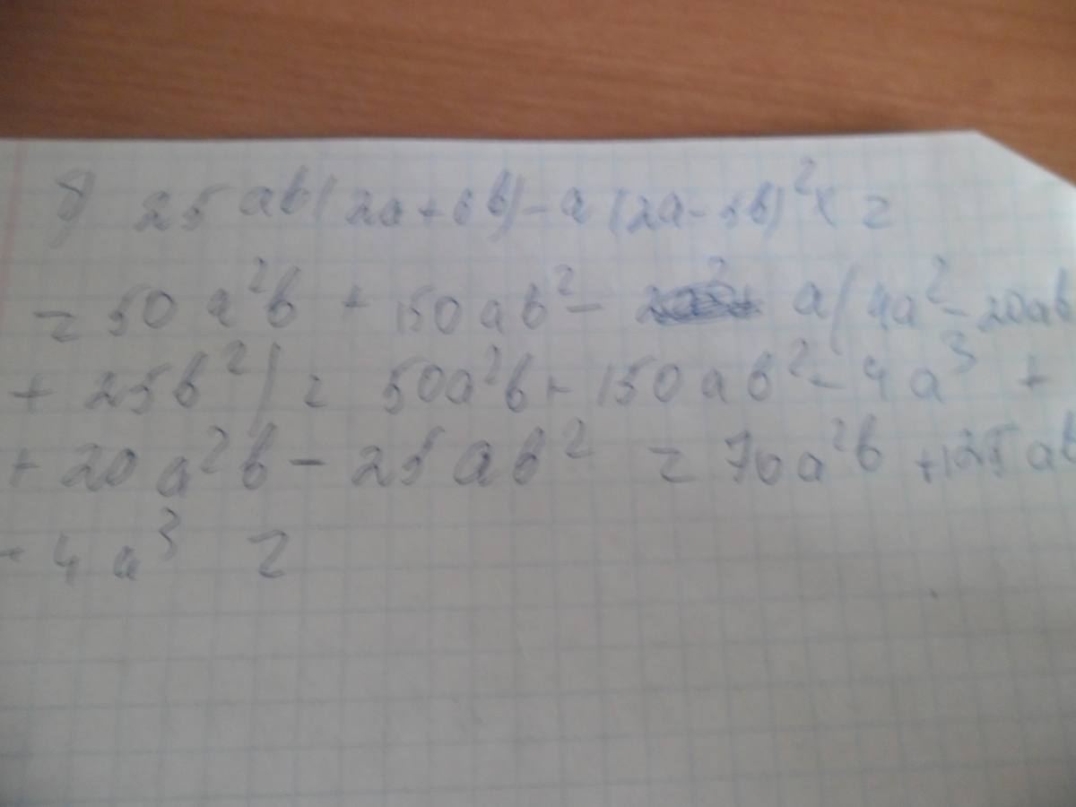 б) 25ab(2a+6b)- a(2a-5b)²=50a²b+150ab²-a(4a²-20ab+25b²)=50a²b+150ab²-4a³+20a²b-25ab²=