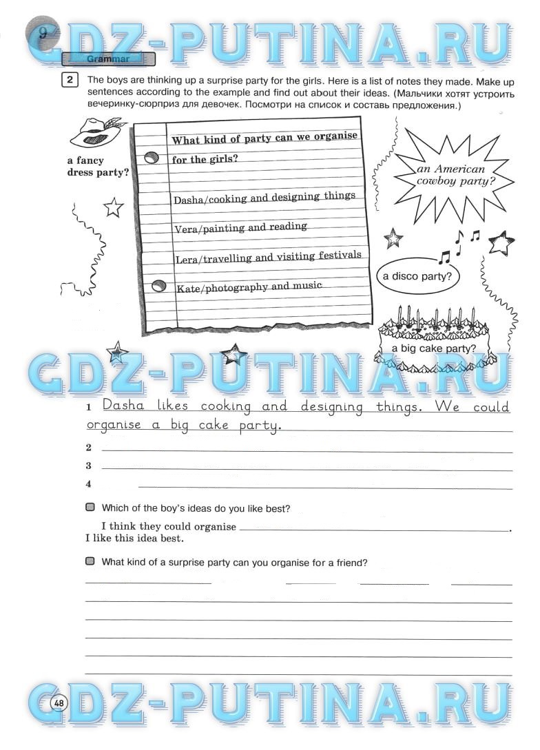 2) Vera likes painting and reading. We could organise an American cowboy party.