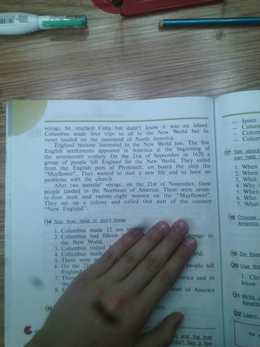 Спустя 2 месяца плавания, 21 ноября, эти люди приплыли к северу Америки. На корабле "Майский цветок" было 74 мужчины и 28 женщин. Они создали колонию и назвали эту часть страны "Новой Англией".