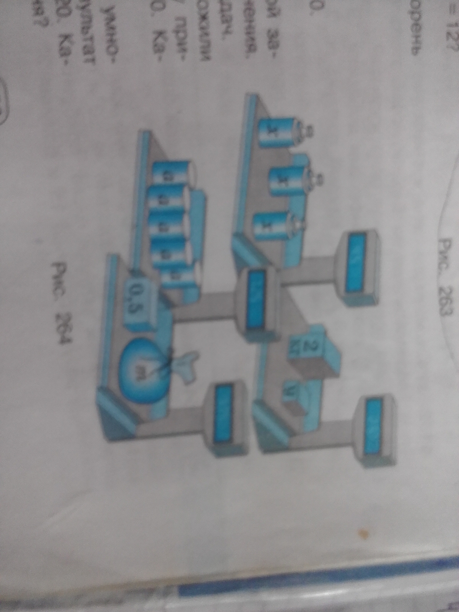 на рисунке изображены весы,чашки которых находятся в равновесии(рис 263) опишите спомощью уравнения,каждую из этих ситуаций и решите полученное ураанение.б)составьте уравнение по(рис 264)и решите его.