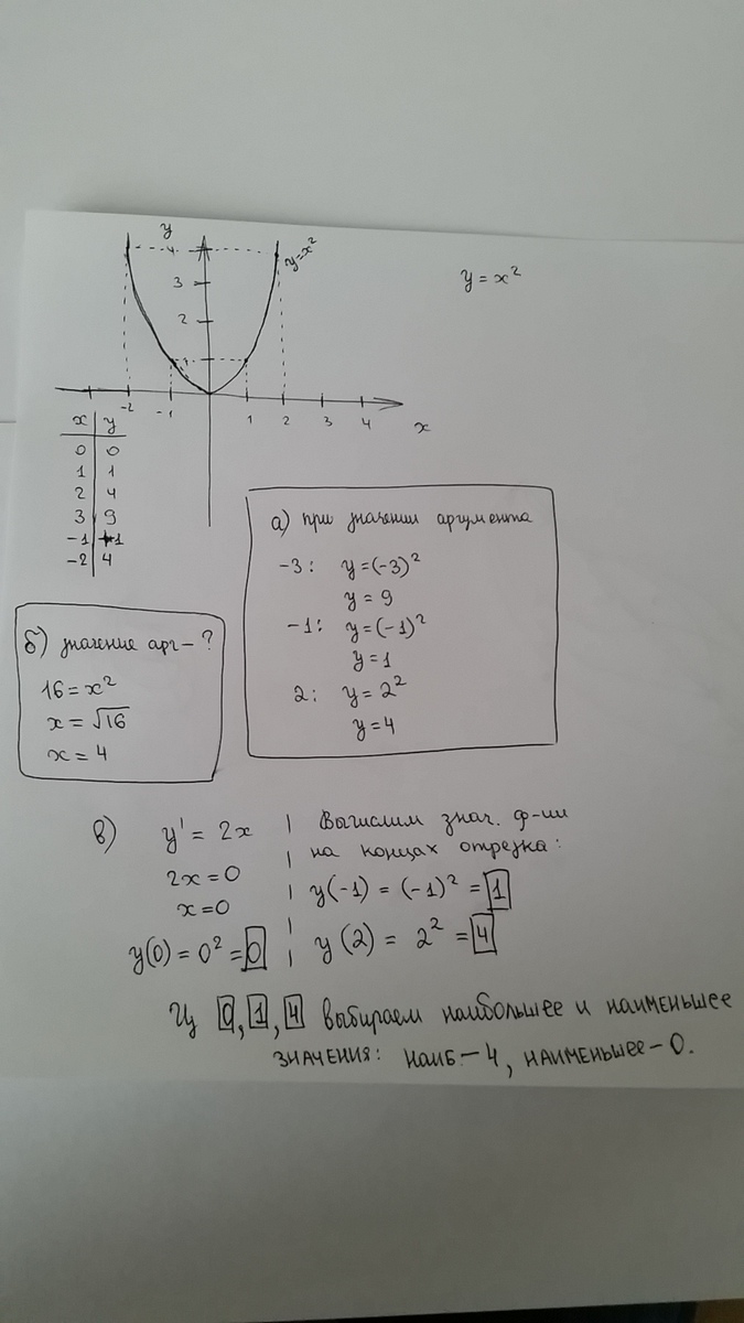 в) наибольшее и наименьшее значения функции на отрезке [-1;2]