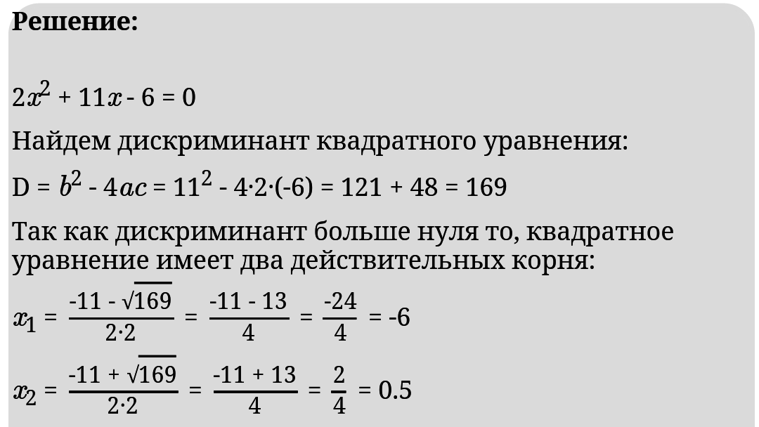Решение примера.X1=-6. x2=0,5