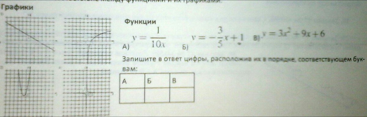 Установите соответствие между функциями и их графиками.