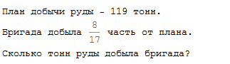 1) 8/17 * 119 = 56 тонн добыла бригада