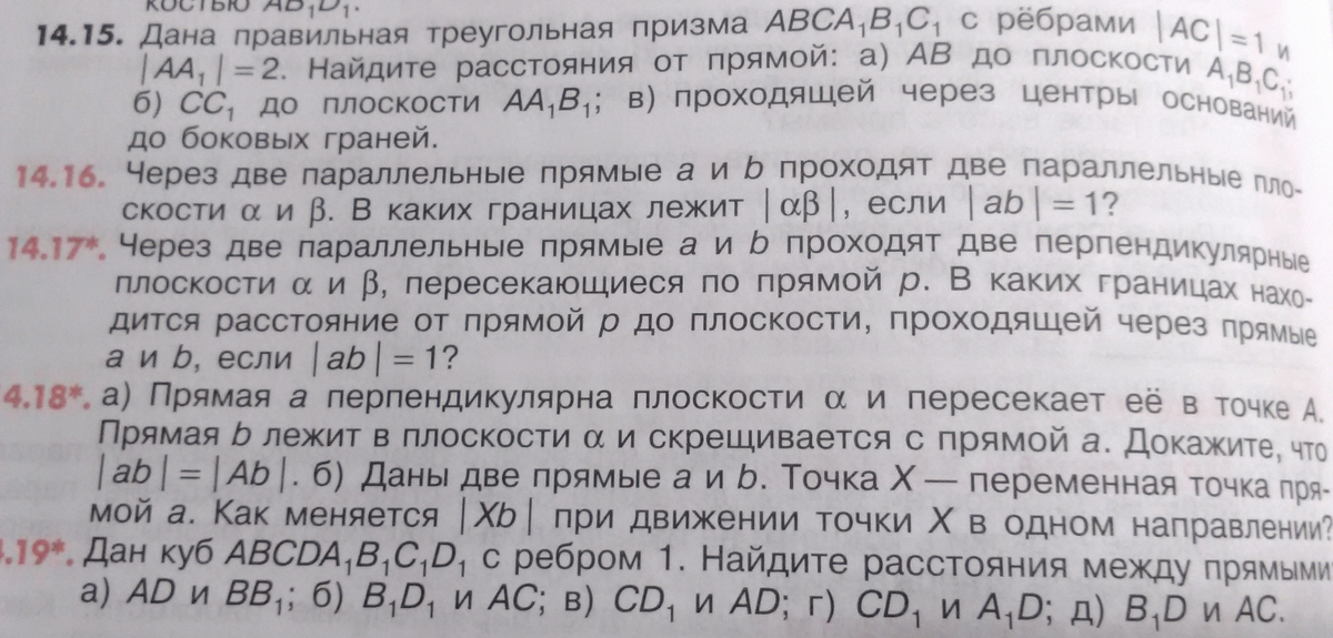 прямая АС диагональ квадратной грани. B1D1 - диагональ грани, параллельной грани ABCD. Соответственно нам нужно найти расстояние между скрещивающимися прямыми, расположенными в параллельных плоскостях. Это как раз и будет высота (или длина ребра) куба - 1