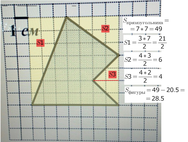 и вычесть из площади прямоугольника "лишние" площади треугольников))