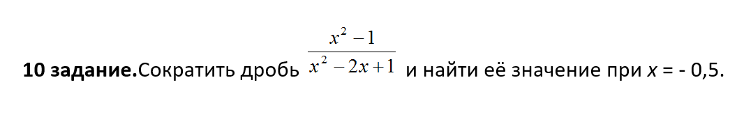 Сократить дробь и найти её значение при х = - 0,5