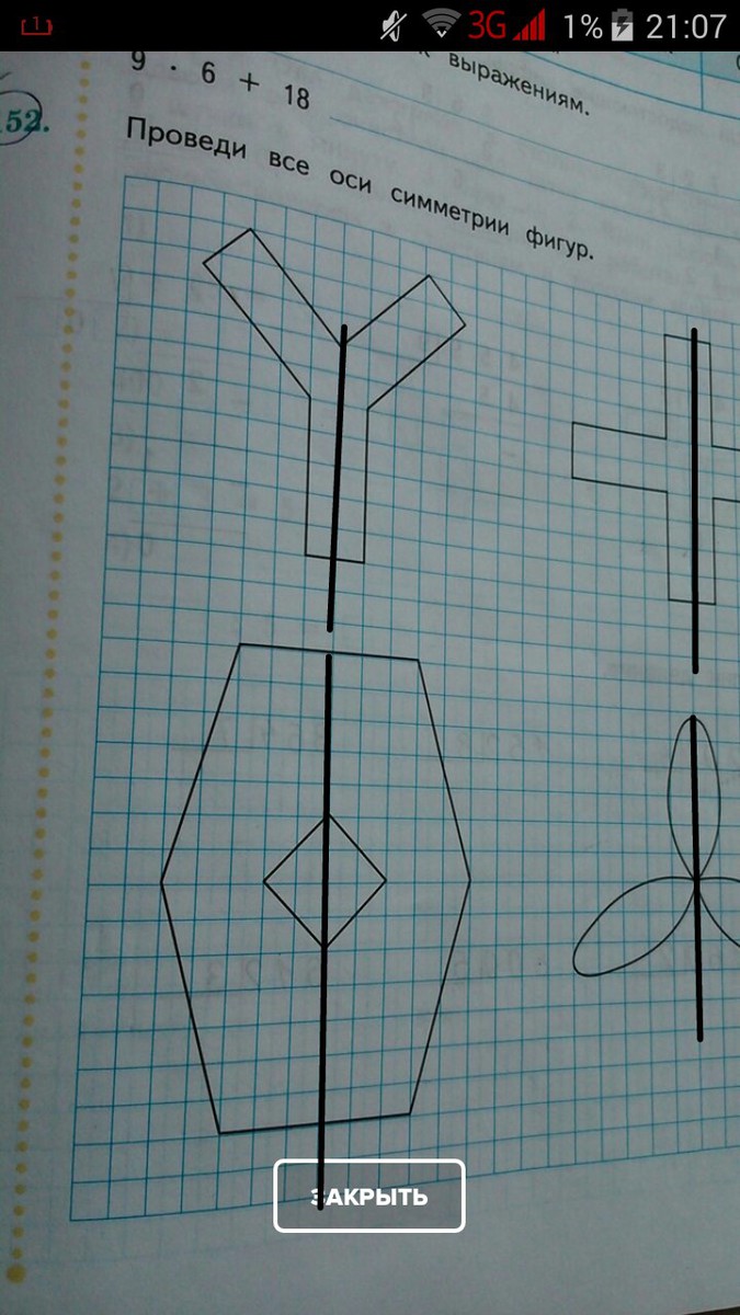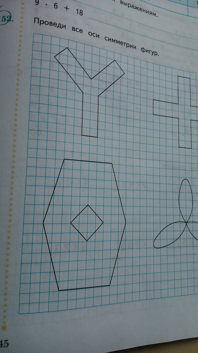 3 фигура крест - там 2 симетрии. проводи как хочешь, главное через середину