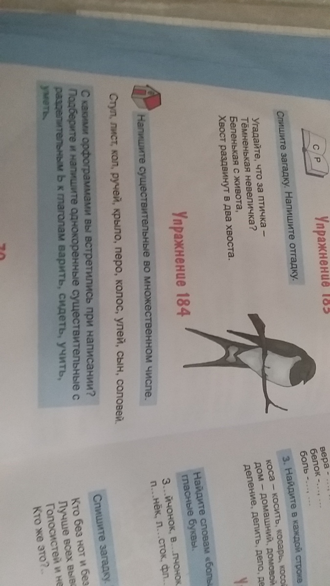 Стулья,листья,колья,ручьи,крылья,перья,колосья,улья,сыновья,соловьи