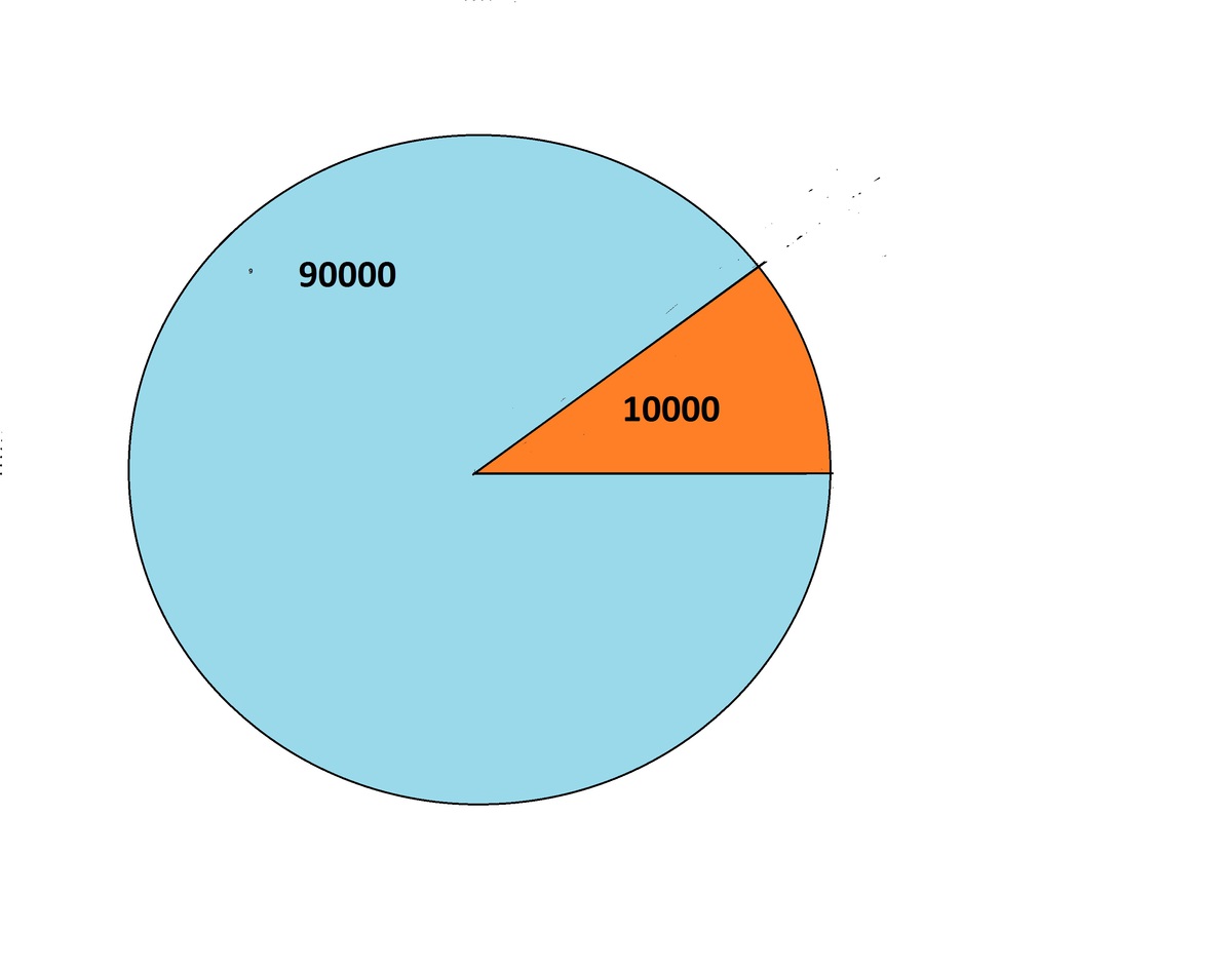 В некотором городе у 90000 жителей есть телефон, а у остальных 10000 его нет. Отразите эту информацию с помощью: