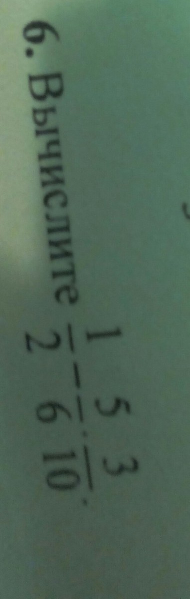 не ну глидите 5/6 x 3/10=1/4 потом 1/2-1/4=1/4 или если нужно в десячичной дроби то 0.25