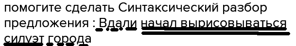 силуэт - подлежащее , начал вырисовываться - сказуемое , вдали - обстоятельство , города - дополнение