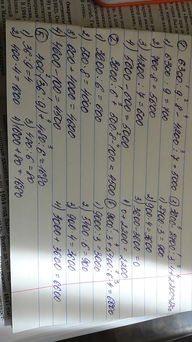 2)3600:6+500*8-100=3600:6=600+500*8=4000-100=3900+600=4500