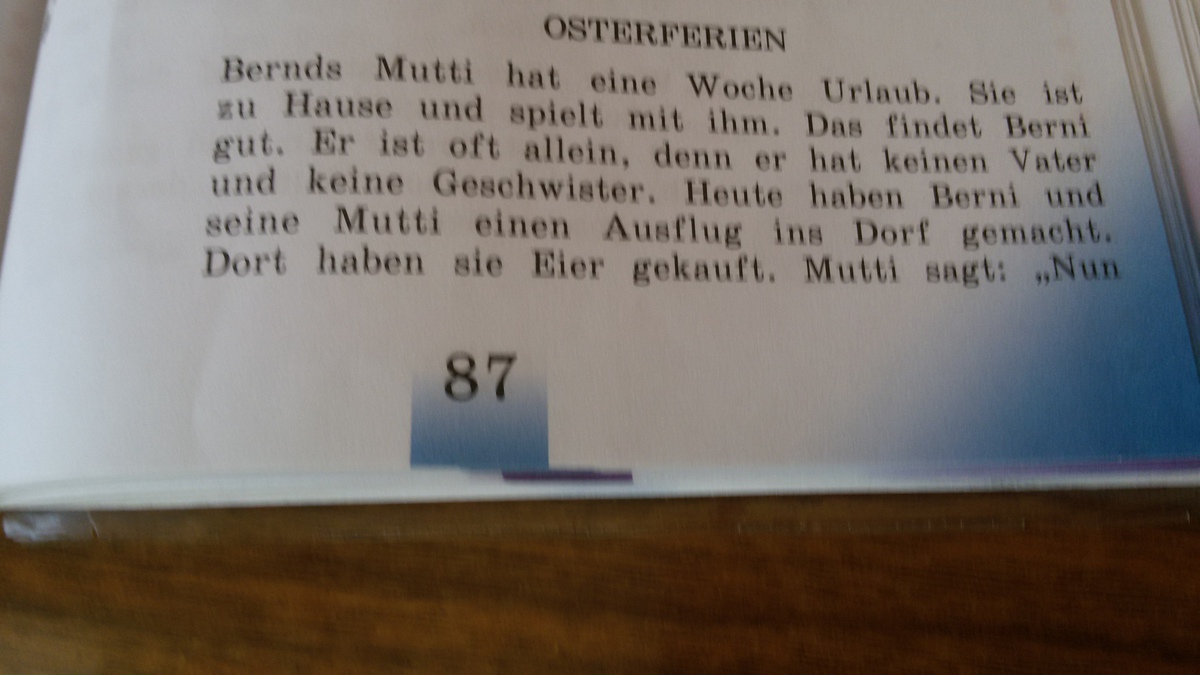 У мамы Бернда неделя отпуска. Она дома и играет с ним. Бернду это нравится. Он часто один,так как у него нет отца,братьев и сестёр. Сегодня Берни и его мама поехали в деревню. Там они купили яиц. Мама говорит:...