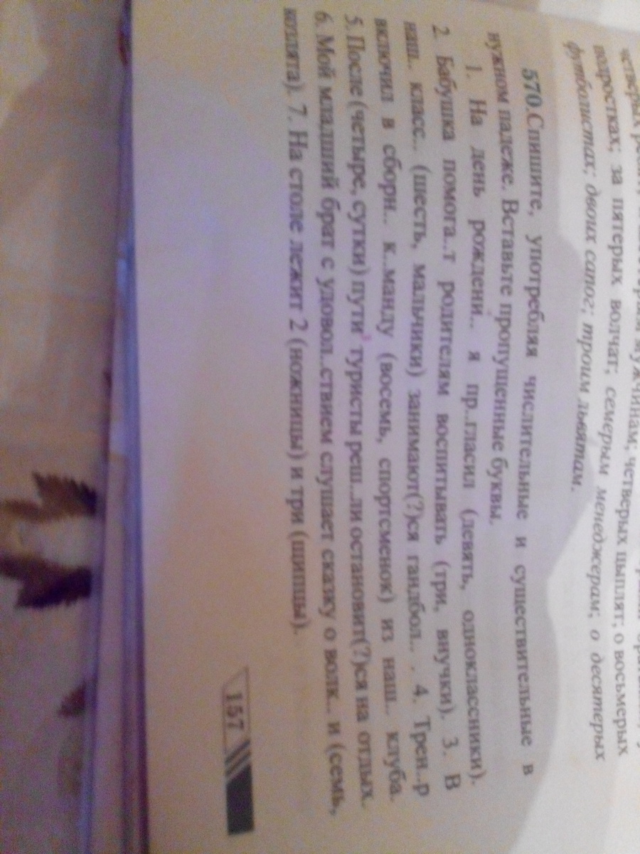 День рождения, пригласил, девять одноклассников. 2Помогает, три внучки.3нашем классе, шесть мальчиков занимаются гандболом.4тренер,сборную команду восемь спортсменок из нашего клуба. 5 четырёх суток,решили остановиться. 6 удовольствием,о волке и семеро козлятах.