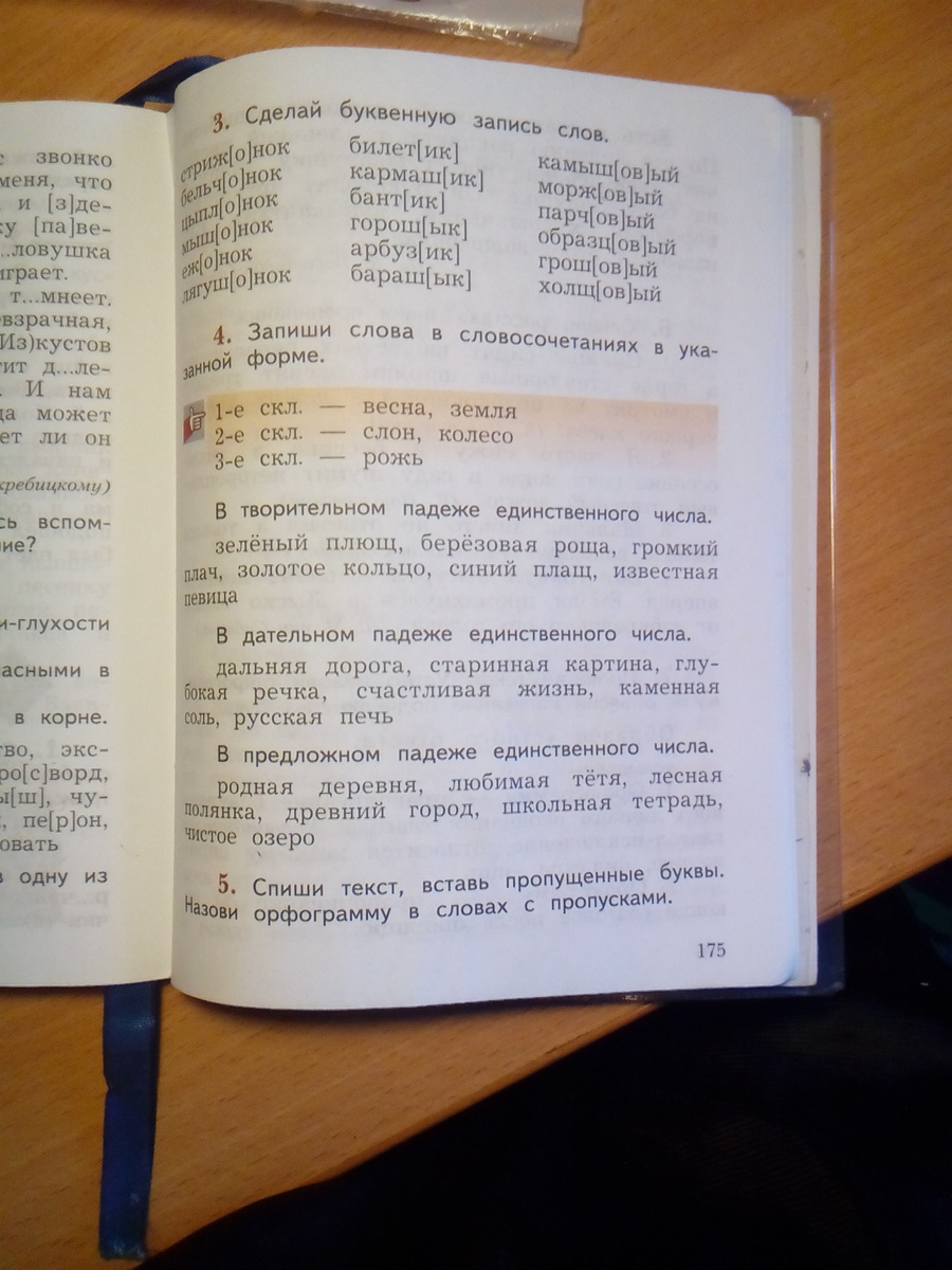 В предложном падеже:родной деревне,любимой тете,лесной полянке,древнем городе,школьной тетради,чистом озере.