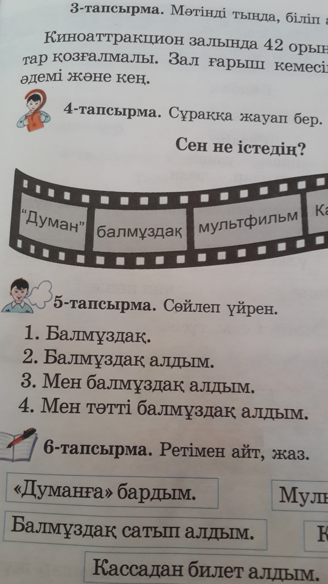 Ата- анам қысты күні балмұздақ жеуге рұқсат бермейді. Мен өзіме ұнайтын балмұздақ алдым. Дүкеннен мен балмұздақ алдым. Жай балмұздақ емес мен тәтті балмұздақ алдым.