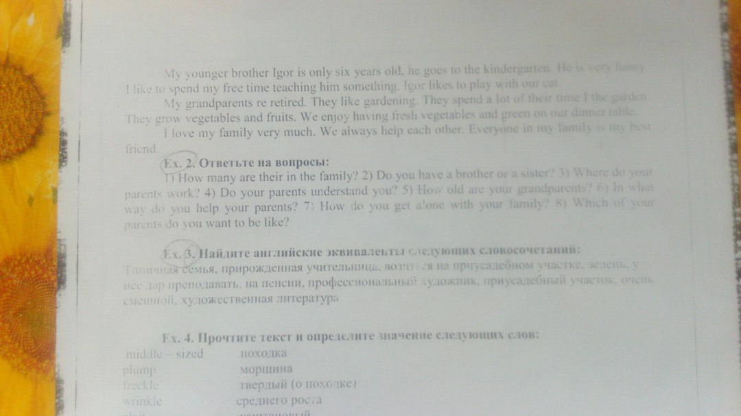ответы на вопросы основаны на моей семье. можно цифры и профессии поменять, а конструкцию оставить.