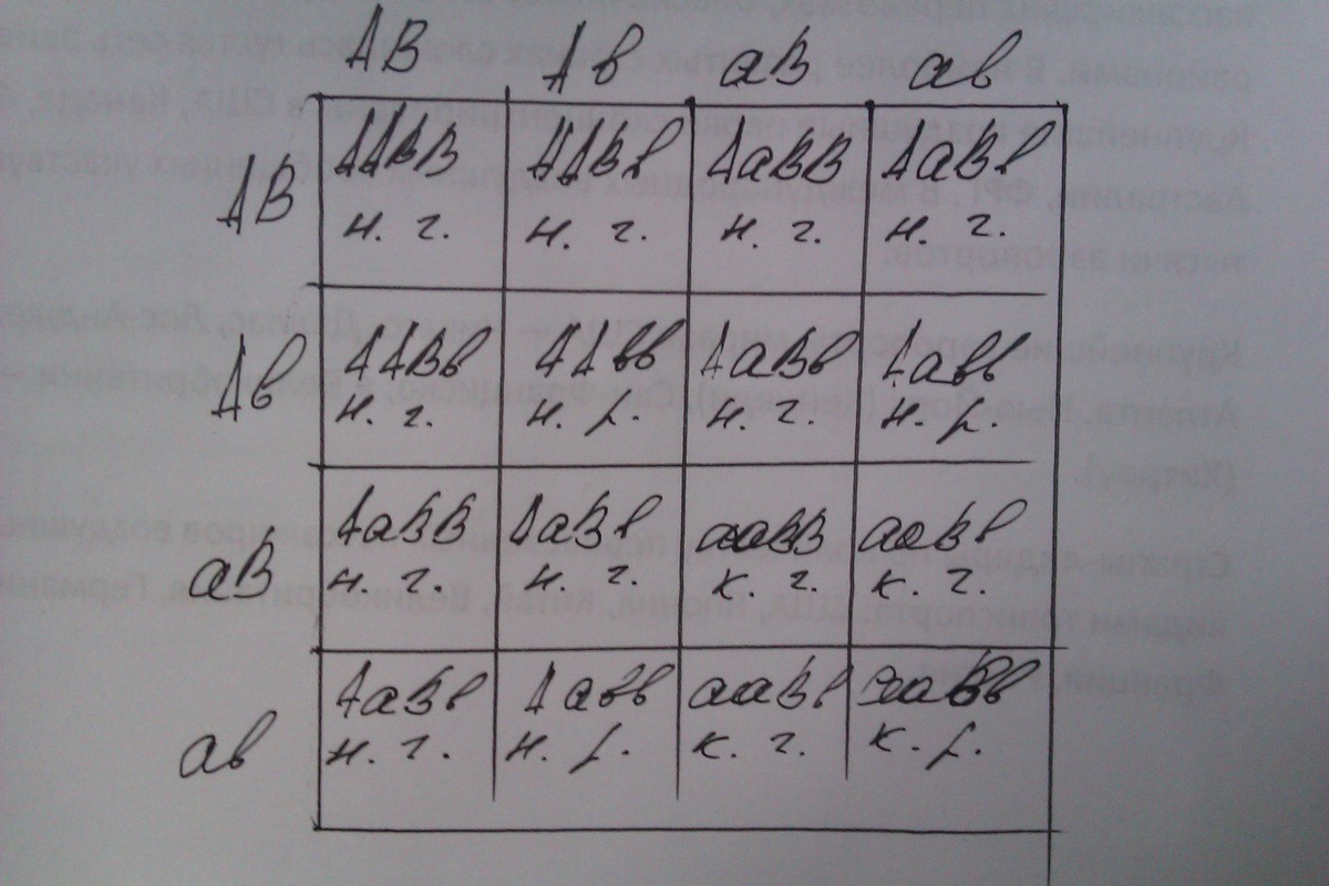 F2 По фенотипу 9н.г. : 3н.р. : 3к.р. : 1к.р.