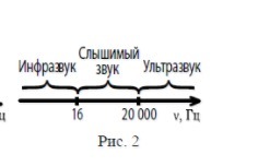 На рис. 1 представлены диапазоны слышимых звуков для человека и различных животных, а на рис. 2 – диапазоны, приходящиеся на инфразвук, звук и ультразвук.