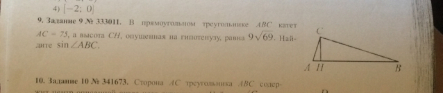 В прямоугольном треугольнике АВС катет АС=75, а высота СН, опущенная на гипотенузу, равна 9 в корне 69. Найдите sin угла АВС