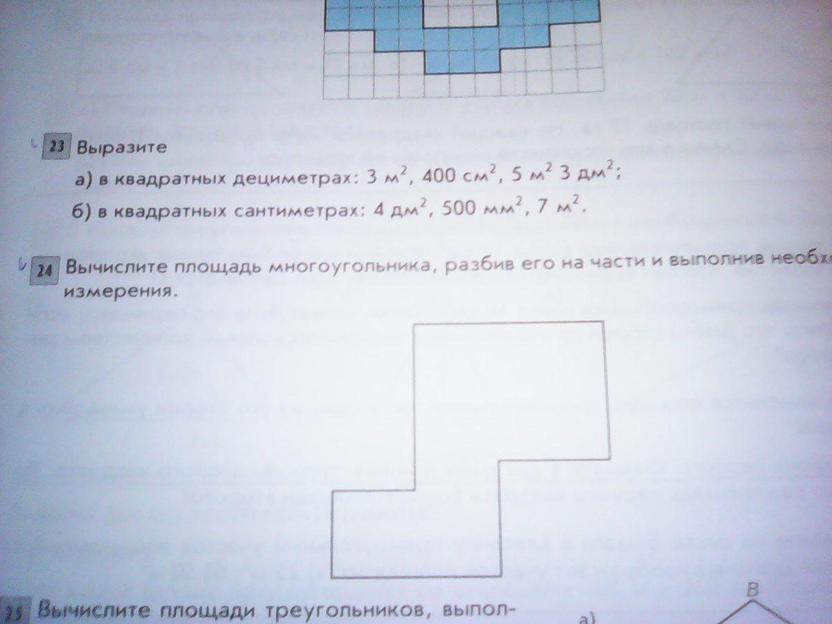 23. а) 3 м² = 300 дм²; 400 см² = 4 дм²; 5 м² 3 дм² = 503 дм²; б) 4 дм² = 400 см²; 500 мм² = 5 см²; 7 м² = 70000 см² .