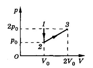 Идеальный одноатомный газ участвует в процессе 1—2—3, представленном на рисунке. Найти отношение количества теплоты, полученного газом, к работе, совершенной газом.