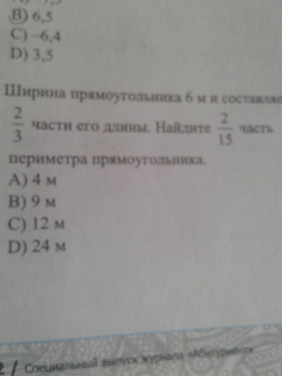 1) 6 :2/3=6*3:2=9м - длина прямоугольника