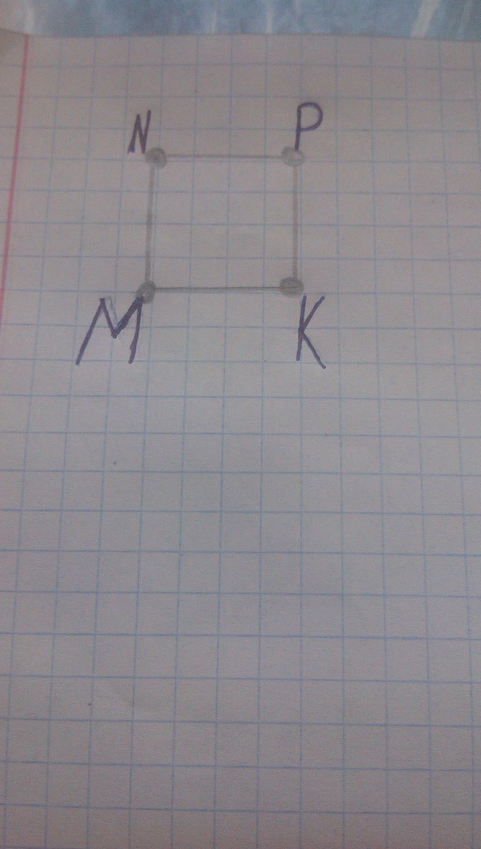 На малюнку зображено квадрат MNPK. Запишіть усі пари перпендикулярних відрізків